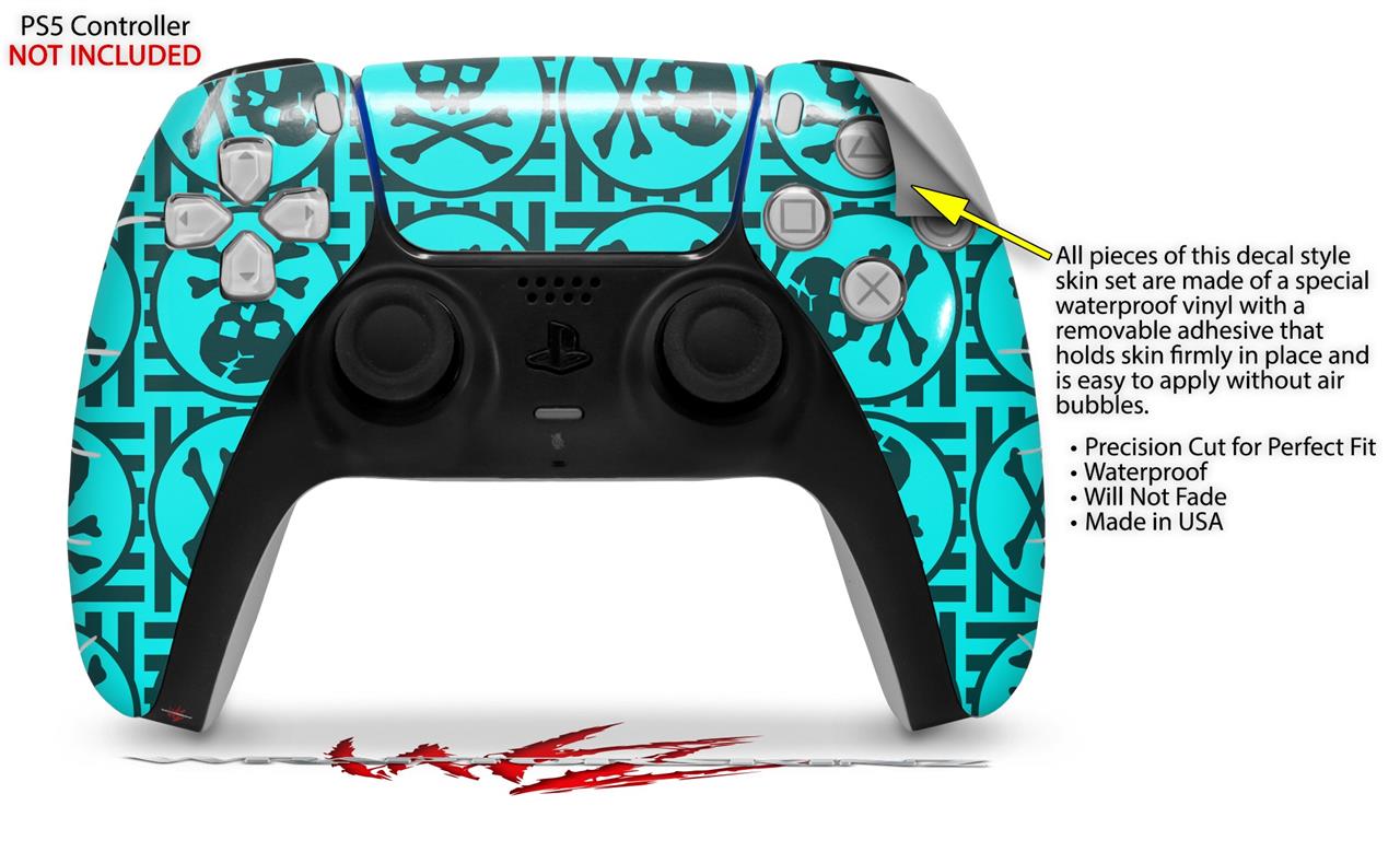 WraptorSkinz Skin Wrap compatible with the Sony PS5 DualSense Controller Skull Patch Pattern Blue (CONTROLLER NOT INCLUDED)