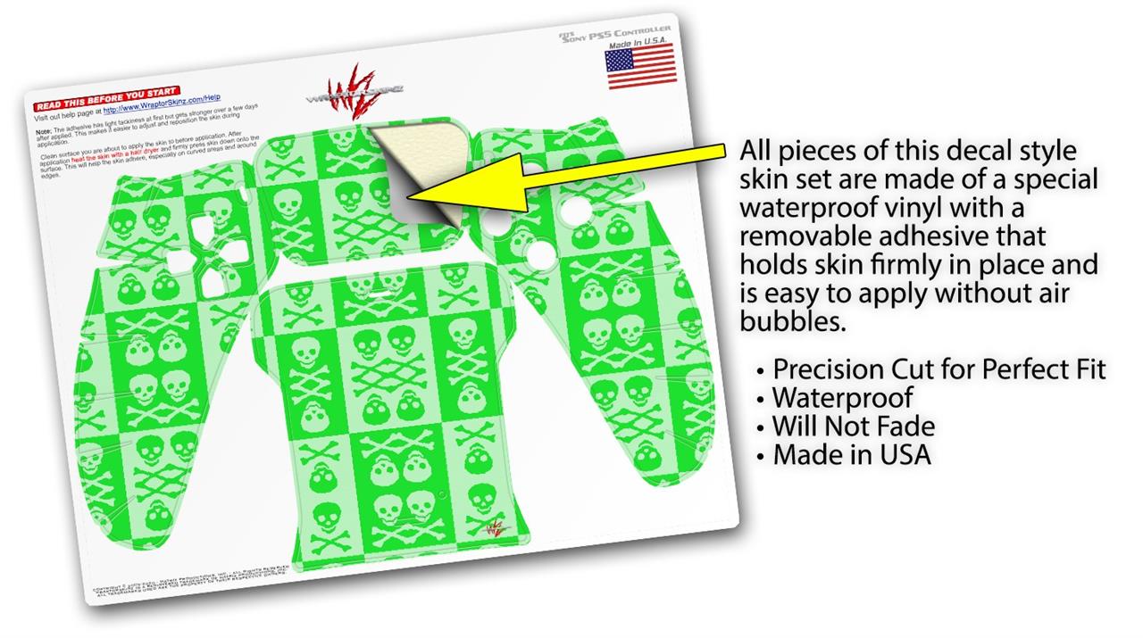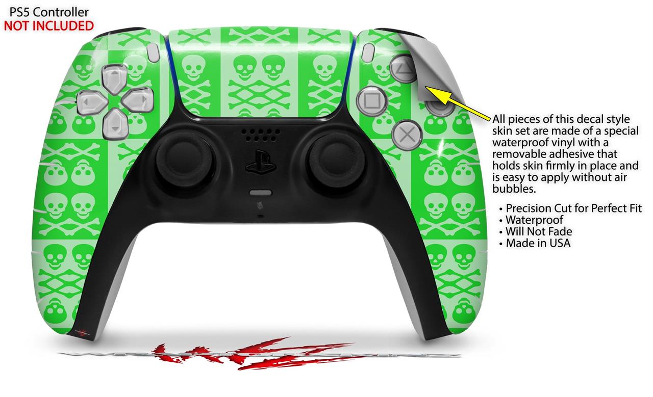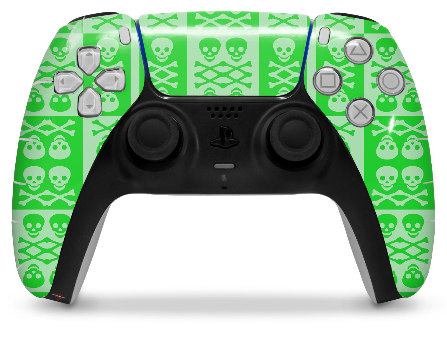 WraptorSkinz Skin Wrap compatible with the Sony PS5 DualSense Controller Skull And Crossbones Pattern Green (CONTROLLER NOT INCLUDED)