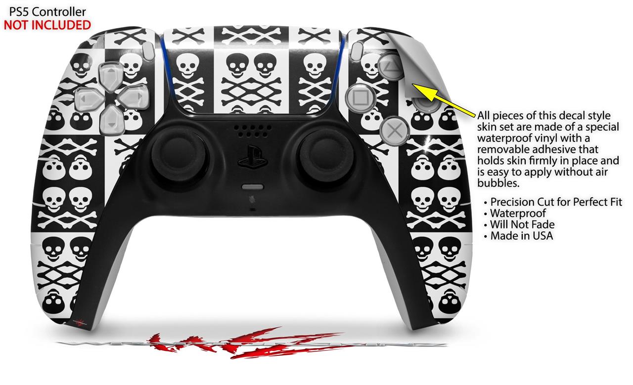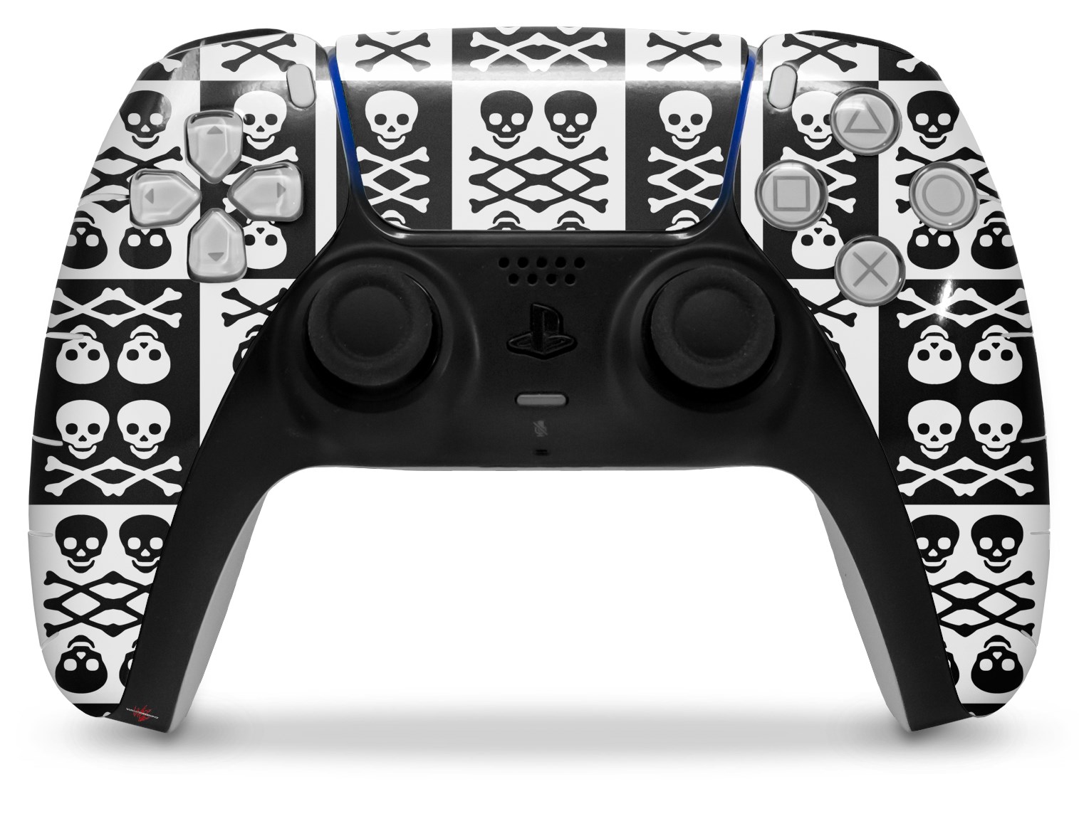 WraptorSkinz Skin Wrap compatible with the Sony PS5 DualSense Controller Skull And Crossbones Pattern Bw (CONTROLLER NOT INCLUDED)