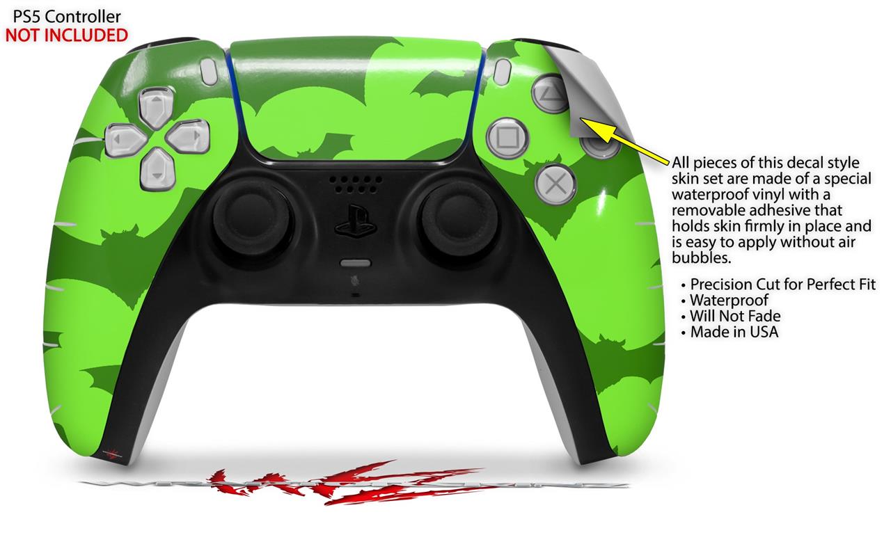 WraptorSkinz Skin Wrap compatible with the Sony PS5 DualSense Controller Deathrock Bats Green (CONTROLLER NOT INCLUDED)