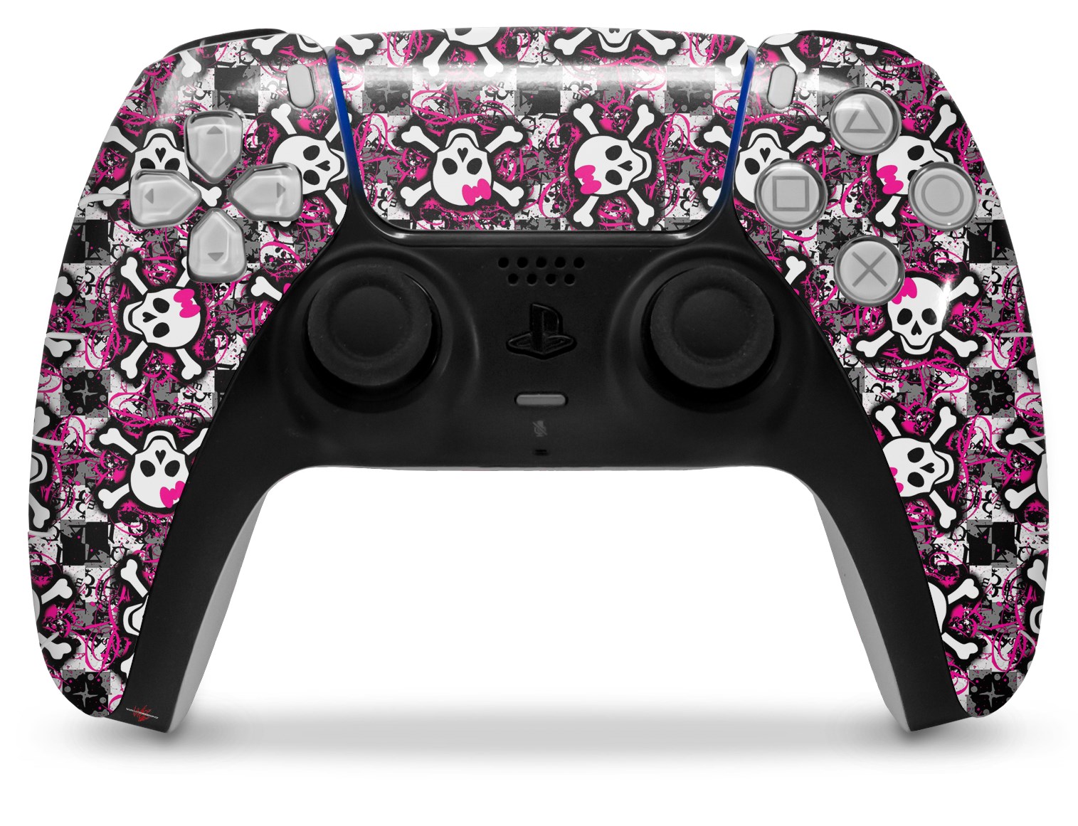 WraptorSkinz Skin Wrap compatible with the Sony PS5 DualSense Controller Splatter Girly Skull Pink (CONTROLLER NOT INCLUDED)