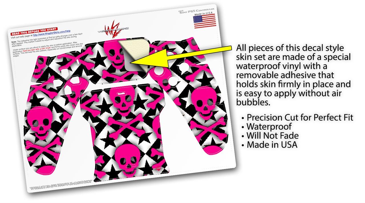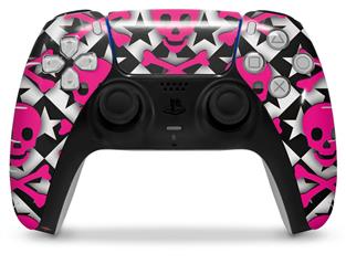 WraptorSkinz Skin Wrap compatible with the Sony PS5 DualSense Controller Pink Skulls and Stars (CONTROLLER NOT INCLUDED)