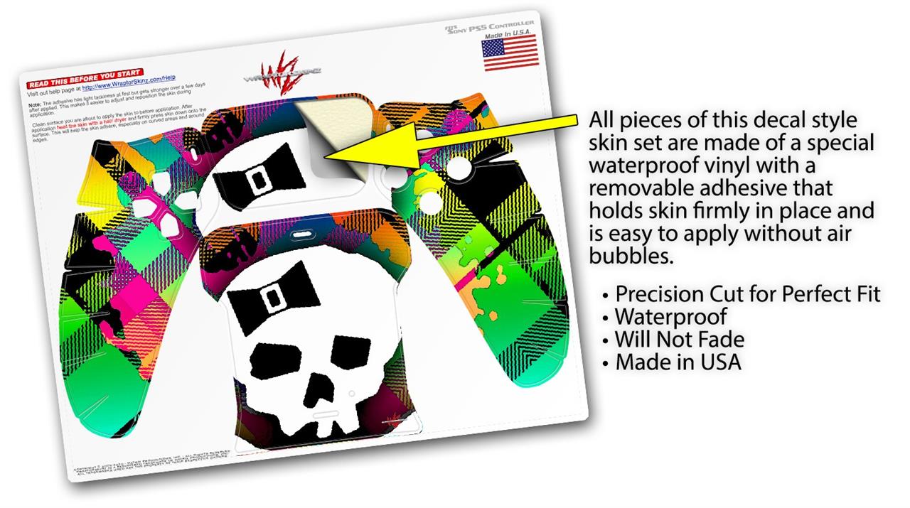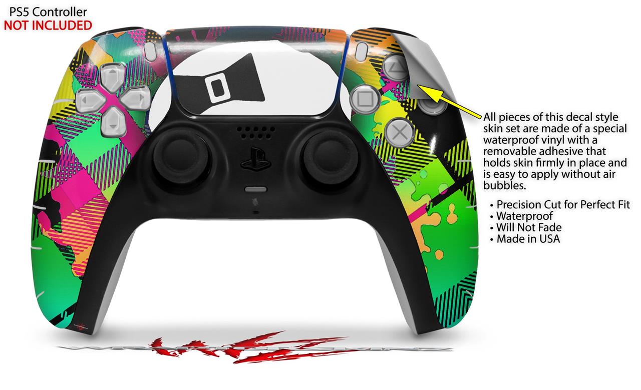 WraptorSkinz Skin Wrap compatible with the Sony PS5 DualSense Controller Rainbow Plaid Skull (CONTROLLER NOT INCLUDED)