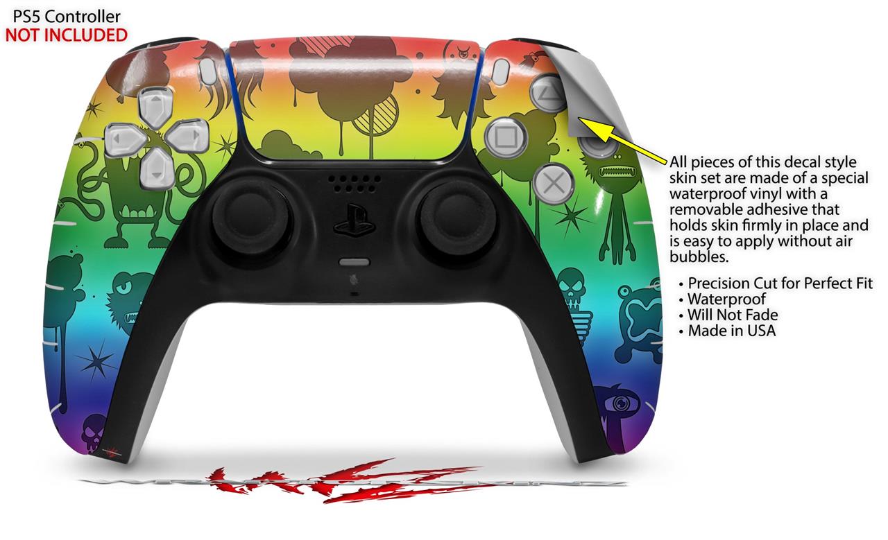 WraptorSkinz Skin Wrap compatible with the Sony PS5 DualSense Controller Cute Rainbow Monsters (CONTROLLER NOT INCLUDED)