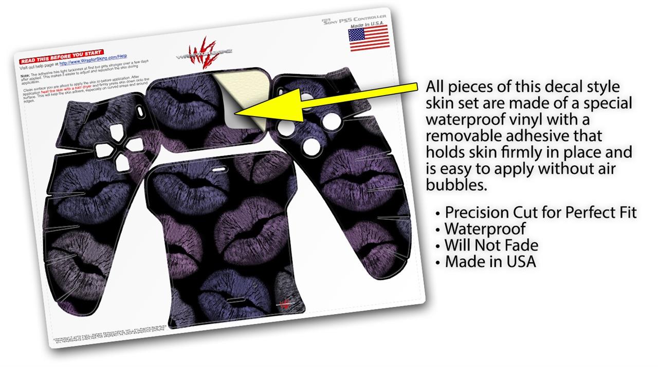 WraptorSkinz Skin Wrap compatible with the Sony PS5 DualSense Controller Purple And Black Lips (CONTROLLER NOT INCLUDED)