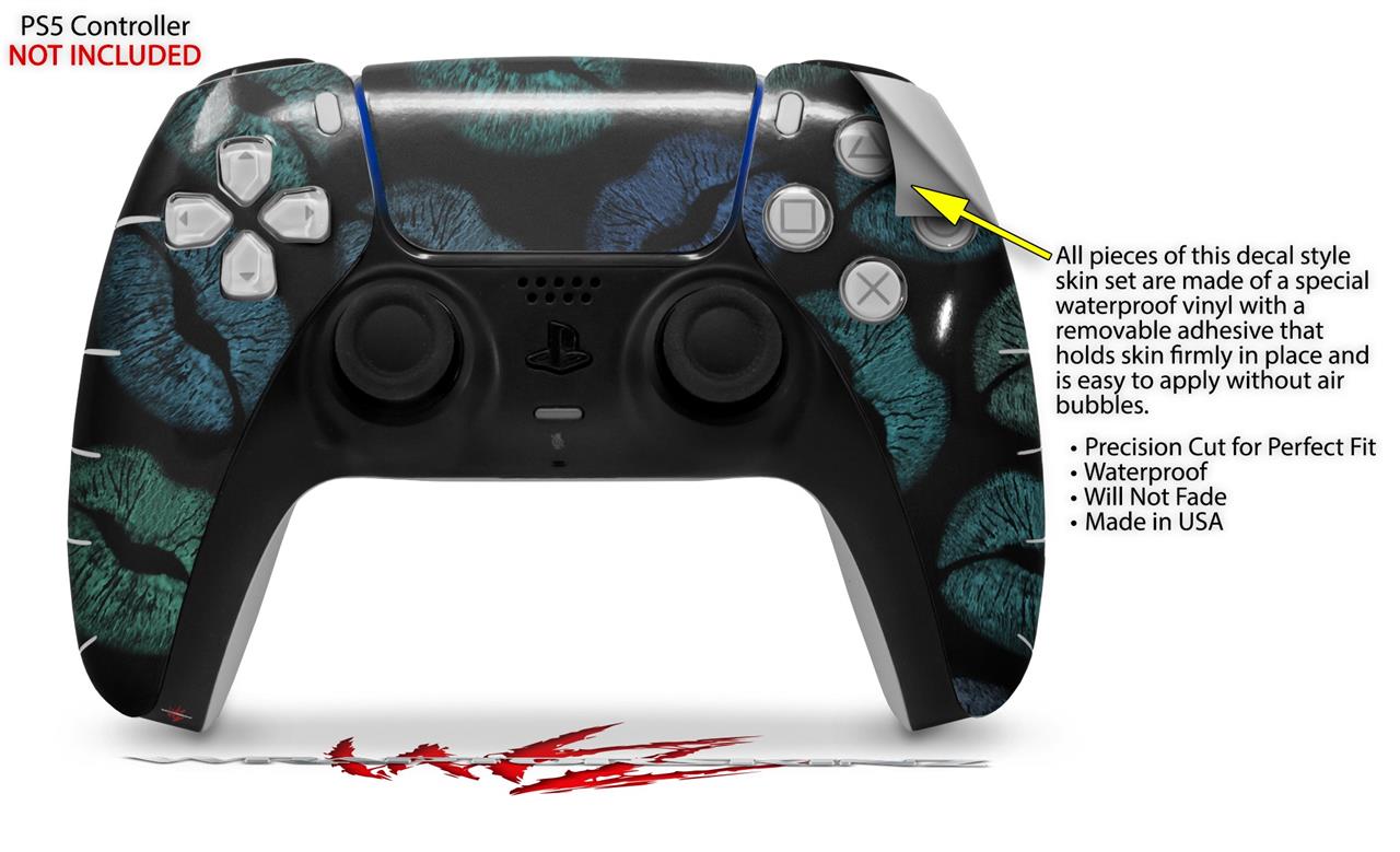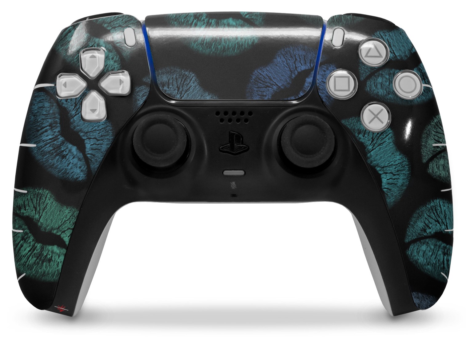 WraptorSkinz Skin Wrap compatible with the Sony PS5 DualSense Controller Blue Green And Black Lips (CONTROLLER NOT INCLUDED)