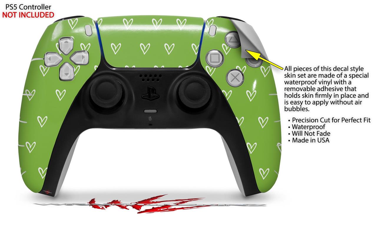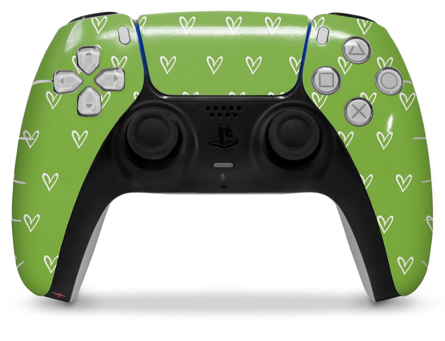 WraptorSkinz Skin Wrap compatible with the Sony PS5 DualSense Controller Hearts Green On White (CONTROLLER NOT INCLUDED)