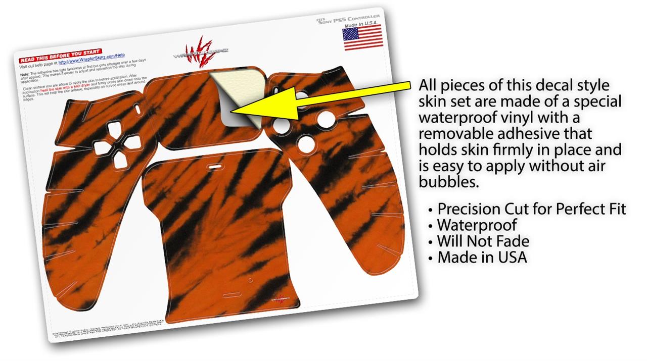 WraptorSkinz Skin Wrap compatible with the Sony PS5 DualSense Controller Tie Dye Bengal Side Stripes (CONTROLLER NOT INCLUDED)