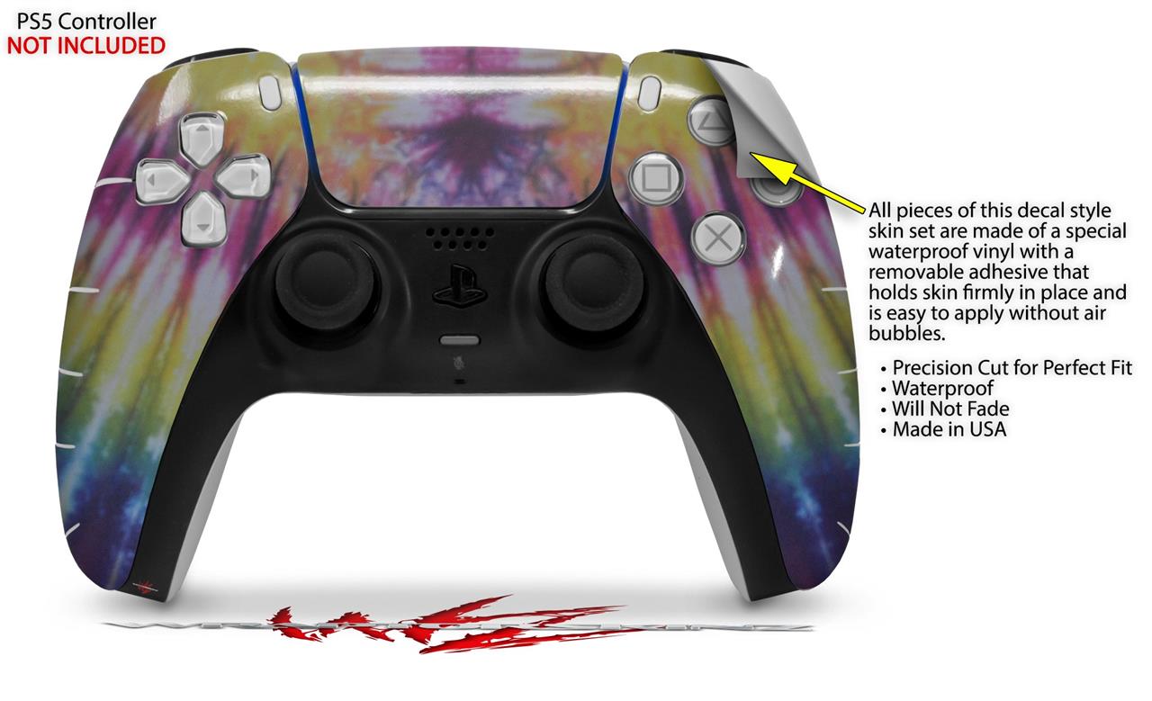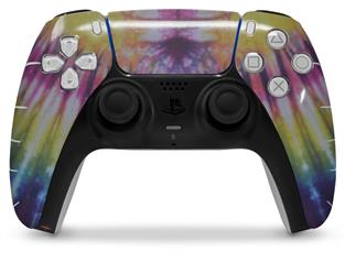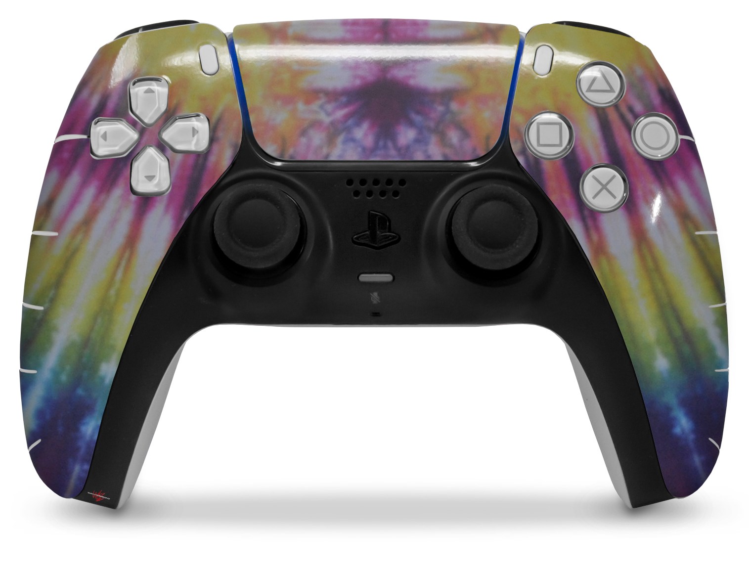 WraptorSkinz Skin Wrap compatible with the Sony PS5 DualSense Controller Tie Dye Pink and Yellow Stripes (CONTROLLER NOT INCLUDED)