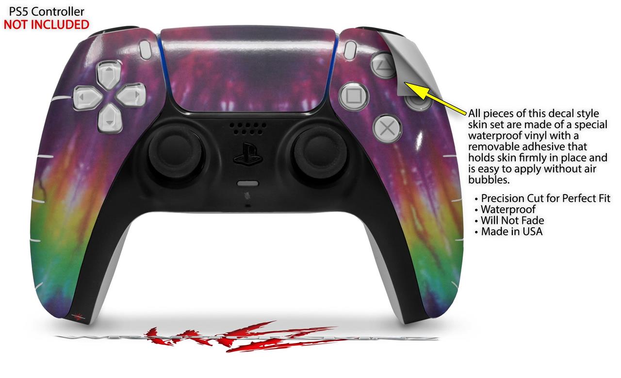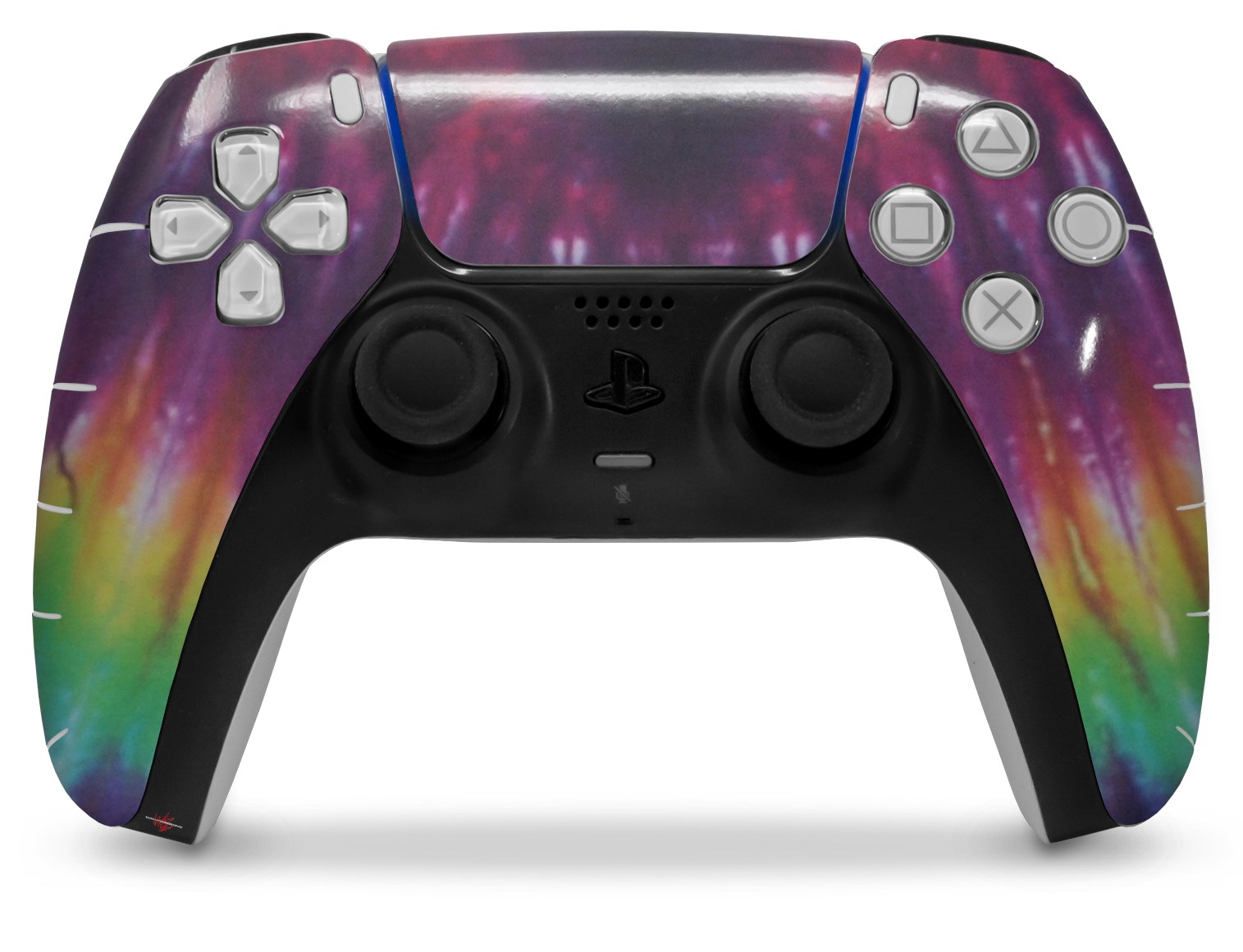 WraptorSkinz Skin Wrap compatible with the Sony PS5 DualSense Controller Tie Dye Red and Purple Stripes (CONTROLLER NOT INCLUDED)