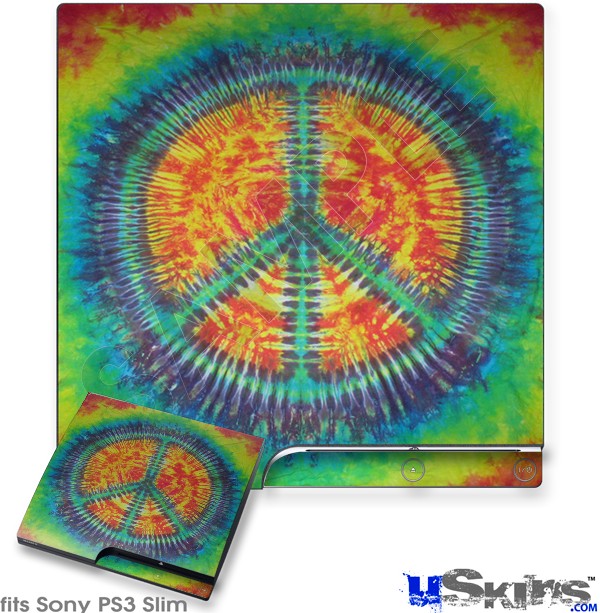 Decal Skin compatible with Sony PS3 Slim Tie Dye Peace Sign 111