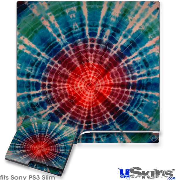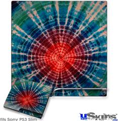 Decal Skin compatible with Sony PS3 Slim Tie Dye Bulls Eye 100