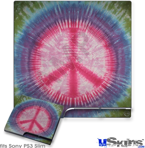 Decal Skin compatible with Sony PS3 Slim Tie Dye Peace Sign 108