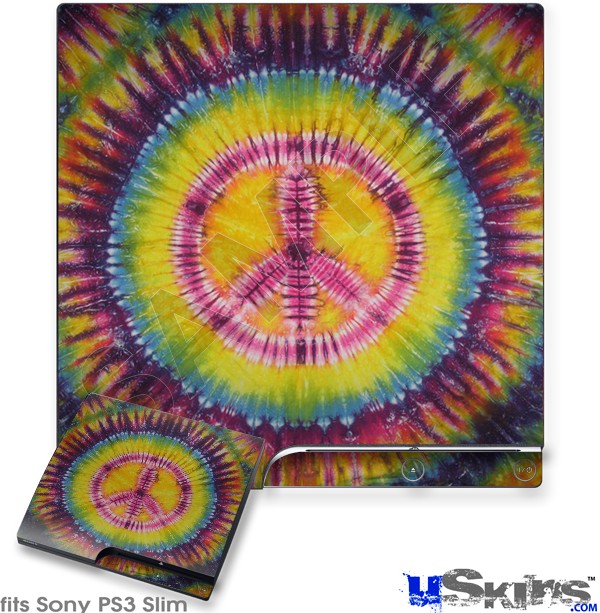 Decal Skin compatible with Sony PS3 Slim Tie Dye Peace Sign 109