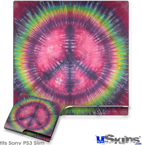 Decal Skin compatible with Sony PS3 Slim Tie Dye Peace Sign 103