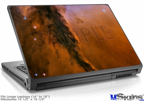 Laptop Skin fits most larger size laptops with 16" to 18" screens. Skin measures 15 1/2" wide x 10 1/2" high. uSkinsTM self adhering vinyl skins will look amazing on your electronic gear, printed at the highest resolution possible for unbeatable color and razor sharp clarity. Unlike bulky silicon, plastic or metal cases and faceplates, uSkins are designed to be thin and very tough. uSkins are a composite of layered commercial grade vinyls. The bottom layer is a soft, flexible vinyl with a special removable adhesive that is easily positioned, applied without air bubbles, and effortlessly removed without leaving a sticky residue. uSkins are printed with the latest in UV protected inks that resist fading for up to 3 years even in direct sunlight. Finally we bond a professional grade laminate over the entire skin adding a professional glossy protective finish.