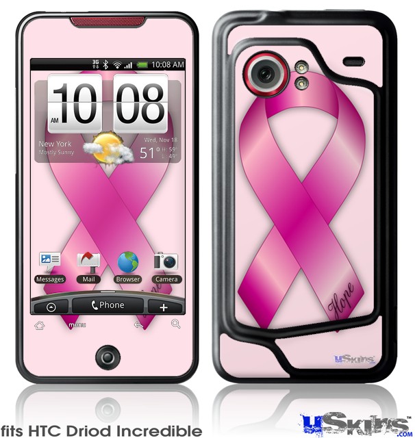 HTC Droid Incredible Skin - Hope Breast Cancer Pink Ribbon on Pink