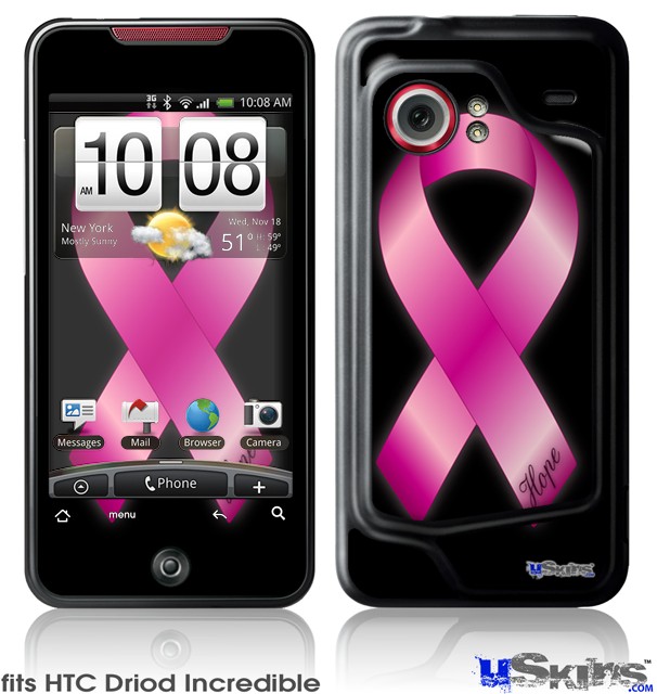 HTC Droid Incredible Skin - Hope Breast Cancer Pink Ribbon on Black