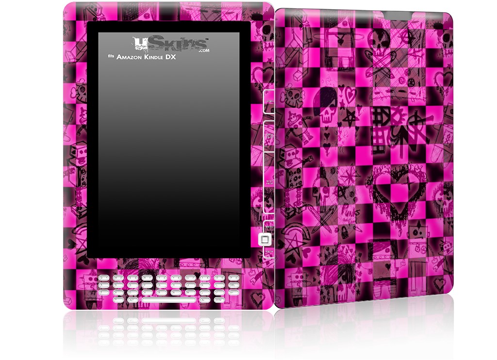 Pink Checkerboard Sketches - Decal Style Skin for Amazon Kindle DX