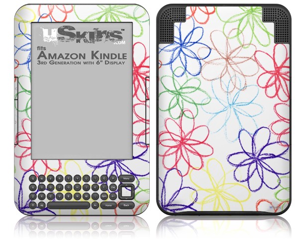 Kearas Flowers on White - Decal Style Skin fits Amazon Kindle 3 Keyboard (with 6 inch display)