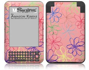 Kearas Flowers on Pink - Decal Style Skin fits Amazon Kindle 3 Keyboard (with 6 inch display)