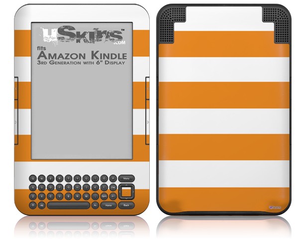Psycho Stripes Orange and White - Decal Style Skin fits Amazon Kindle 3 Keyboard (with 6 inch display)