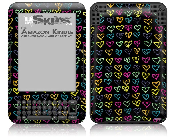 Kearas Hearts Black - Decal Style Skin fits Amazon Kindle 3 Keyboard (with 6 inch display)