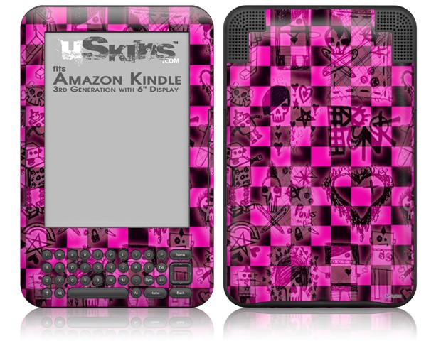 Pink Checkerboard Sketches - Decal Style Skin fits Amazon Kindle 3 Keyboard (with 6 inch display)