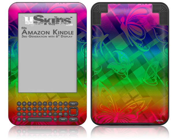 Rainbow Butterflies - Decal Style Skin fits Amazon Kindle 3 Keyboard (with 6 inch display)