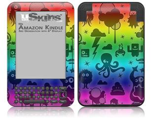 Cute Rainbow Monsters - Decal Style Skin fits Amazon Kindle 3 Keyboard (with 6 inch display)