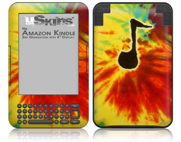 Tie Dye Music Note 100 - Decal Style Skin fits Amazon Kindle 3 Keyboard (with 6 inch display)