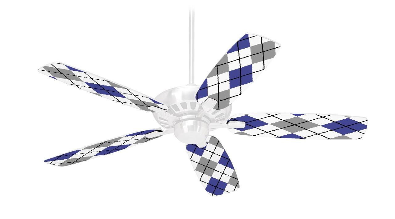 Argyle Blue and Gray - Ceiling Fan Skin Kit fits most 42 inch fans (FAN and BLADES SOLD SEPARATELY)