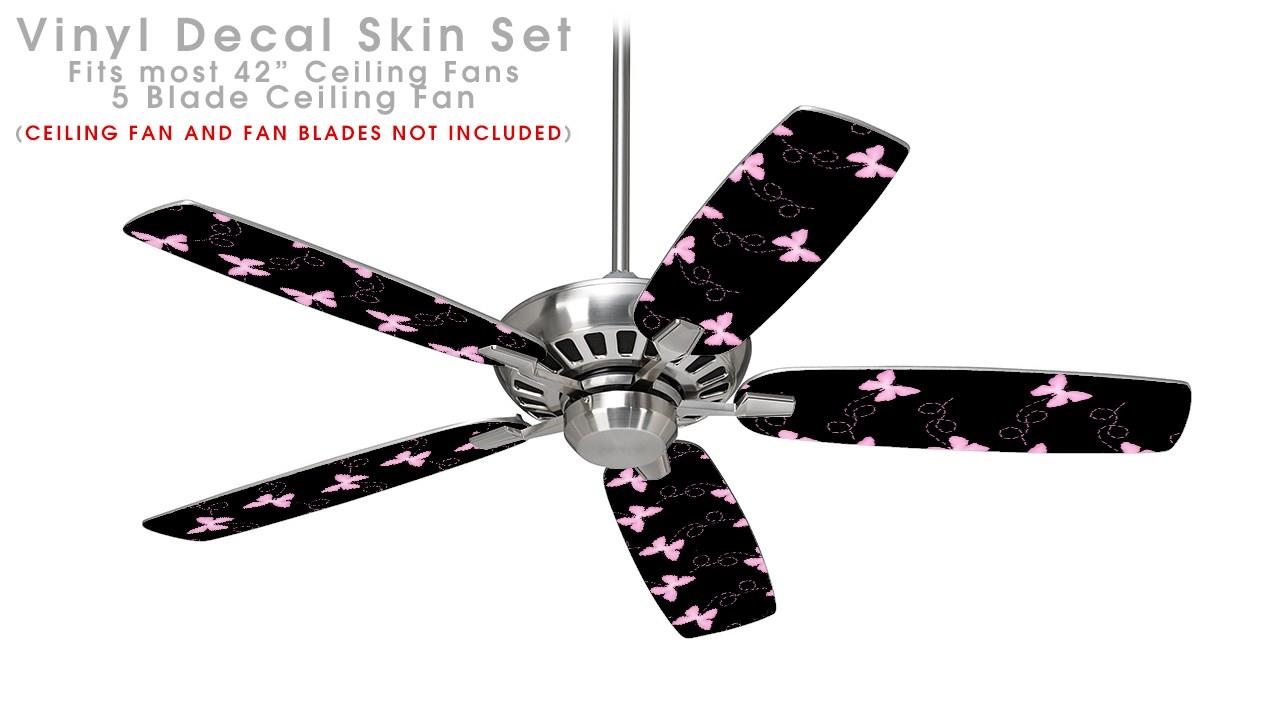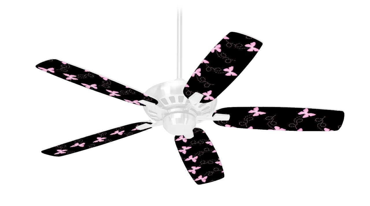Pastel Butterflies Pink on Black - Ceiling Fan Skin Kit fits most 42 inch fans (FAN and BLADES SOLD SEPARATELY)