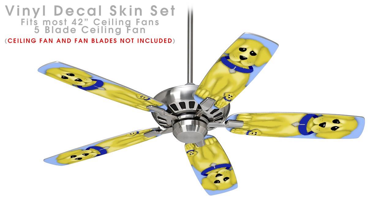 Puppy Dogs on Blue - Ceiling Fan Skin Kit fits most 42 inch fans (FAN and BLADES SOLD SEPARATELY)