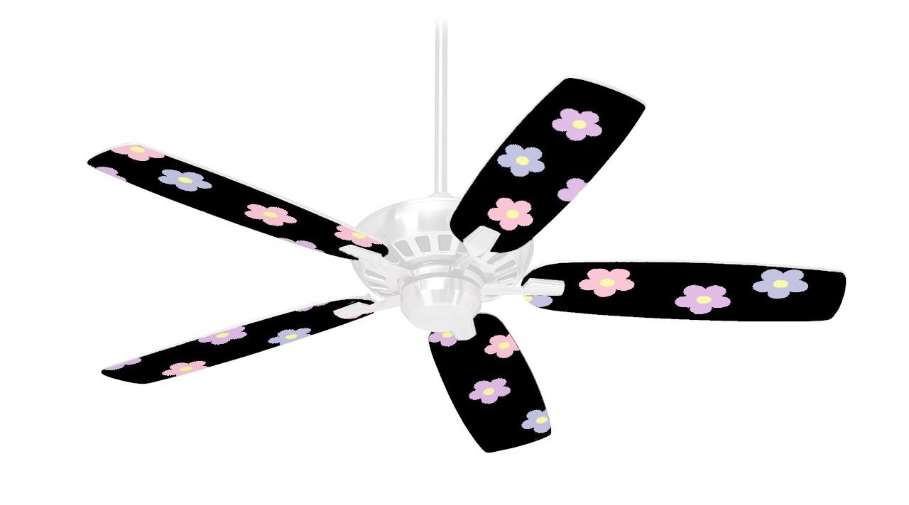 Pastel Flowers on Black - Ceiling Fan Skin Kit fits most 42 inch fans (FAN and BLADES SOLD SEPARATELY)