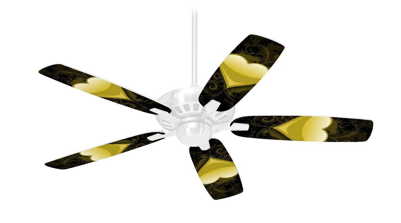 Glass Heart Grunge Yellow - Ceiling Fan Skin Kit fits most 42 inch fans (FAN and BLADES SOLD SEPARATELY)