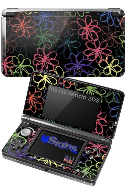 Kearas Flowers on Black - Decal Style Skin fits Nintendo 3DS (3DS SOLD SEPARATELY)
