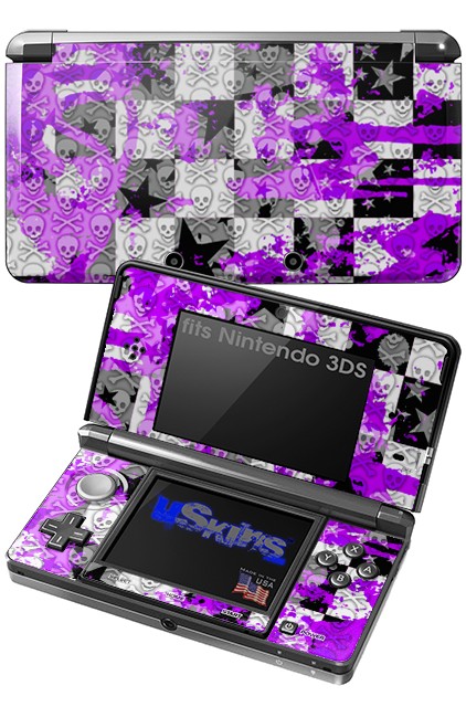 Purple Checker Skull Splatter - Decal Style Skin fits Nintendo 3DS (3DS SOLD SEPARATELY)