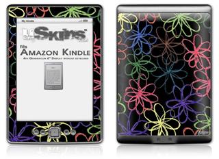 Kearas Flowers on Black - Decal Style Skin (fits 4th Gen Kindle with 6inch display and no keyboard)