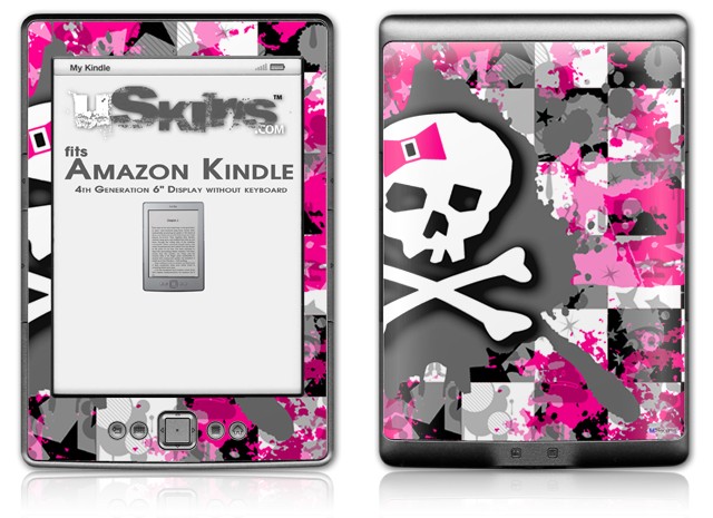 Girly Pink Bow Skull - Decal Style Skin (fits 4th Gen Kindle with 6inch display and no keyboard)