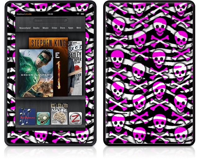Amazon Kindle Fire (Original) Decal Style Skin - Zebra Pink Skulls