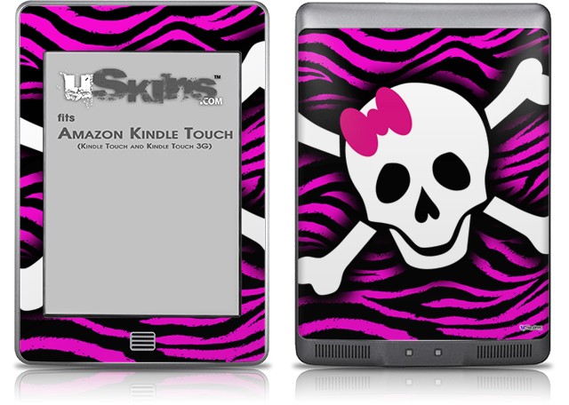 Pink Zebra Skull - Decal Style Skin (fits Amazon Kindle Touch Skin)