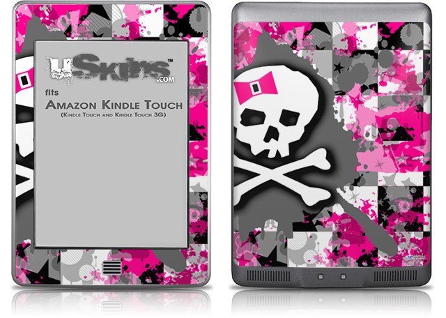 Girly Pink Bow Skull - Decal Style Skin (fits Amazon Kindle Touch Skin)