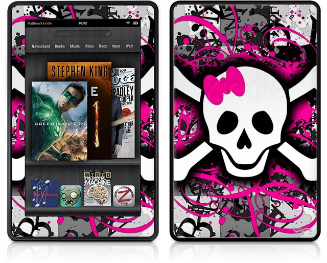 Amazon Kindle Fire (Original) Decal Style Skin - Splatter Girly Skull