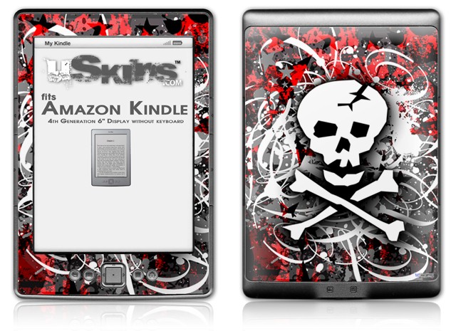 Skull Splatter - Decal Style Skin (fits 4th Gen Kindle with 6inch display and no keyboard)