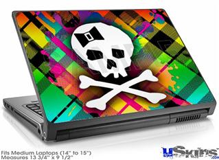 Laptop Skin (Medium) - Rainbow Plaid Skull