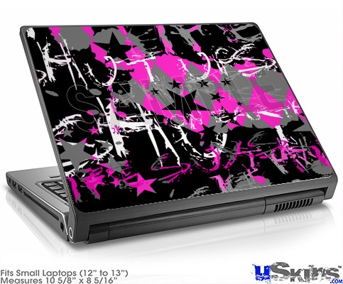 Laptop Skin fits most smaller size laptops with 12" to 13" screens. Skin measures 10 5/8" wide x 8 5/16" high. uSkinsTM self adhering vinyl skins will look amazing on your electronic gear, printed at the highest resolution possible for unbeatable color and razor sharp clarity. Unlike bulky silicon, plastic or metal cases and faceplates, uSkins are designed to be thin and very tough. uSkins are a composite of layered commercial grade vinyls. The bottom layer is a soft, flexible vinyl with a special removable adhesive that is easily positioned, applied without air bubbles, and effortlessly removed without leaving a sticky residue. uSkins are printed with the latest in UV protected inks that resist fading for up to 3 years even in direct sunlight. Finally we bond a professional grade laminate over the entire skin adding a professional glossy protective finish.