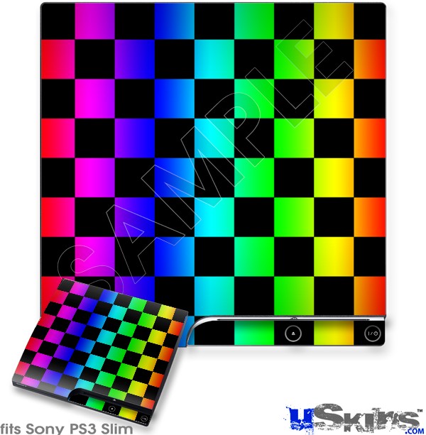 Decal Skin compatible with Sony PS3 Slim Rainbow Checkerboard