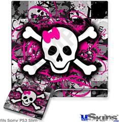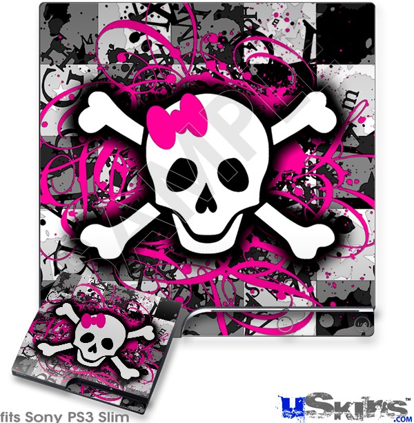 Decal Skin compatible with Sony PS3 Slim Splatter Girly Skull