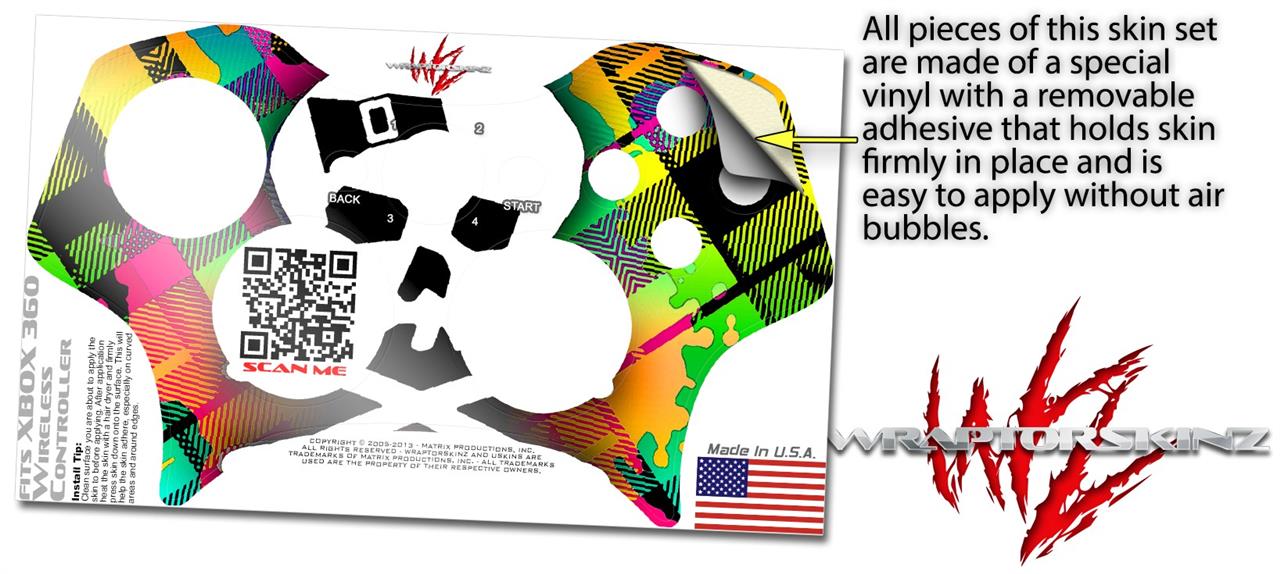 XBOX 360 Wireless Controller Decal Style Skin - Rainbow Plaid Skull (CONTROLLER NOT INCLUDED)